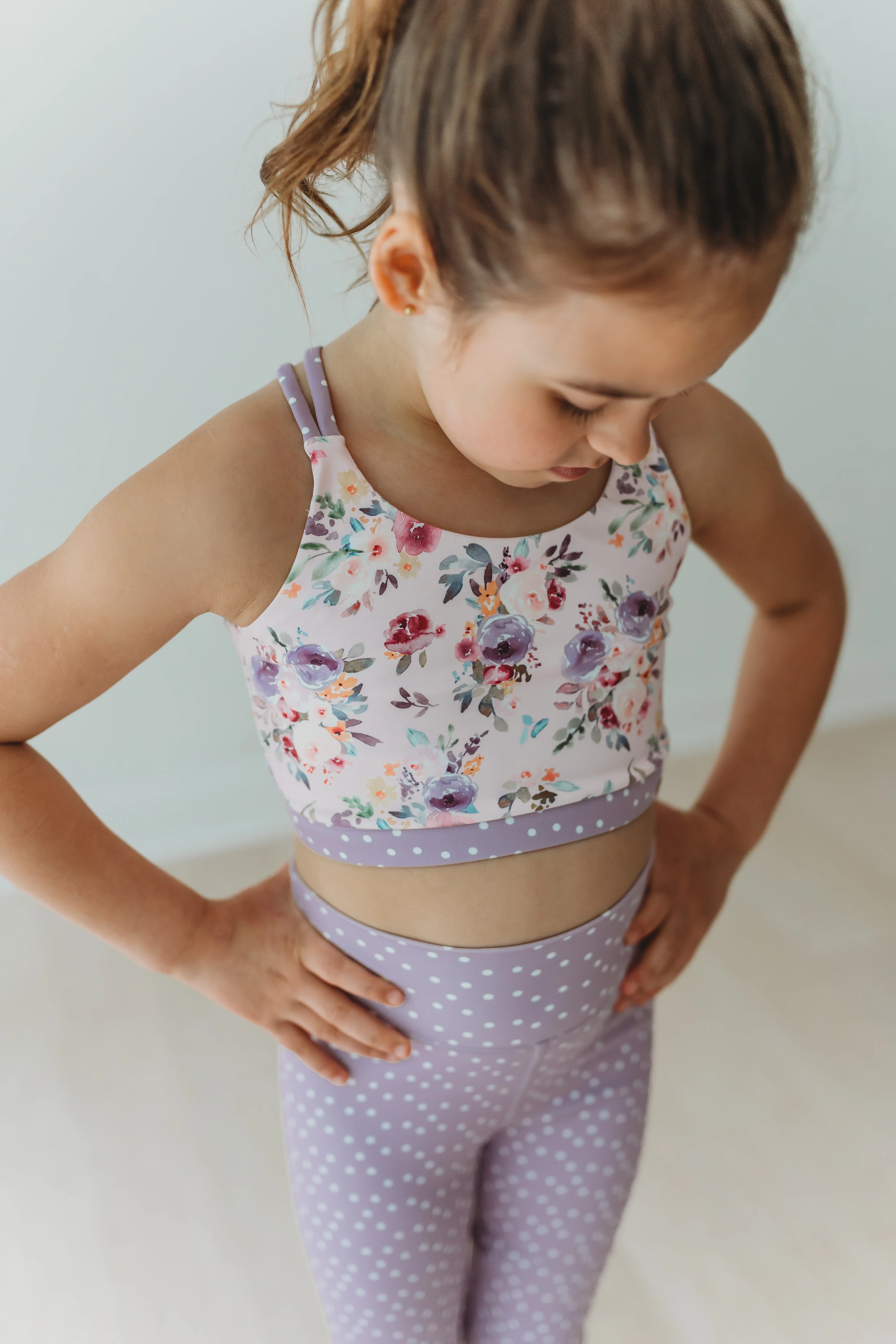 Shes going to love her workouts in the Active Crop Tank in Violet Breeze. This top features cross straps at the back for a secure fit and a fun mixed print of florals and polka dots. With its cropped length, it's the perfect blend of style and function for her active lifestyle.