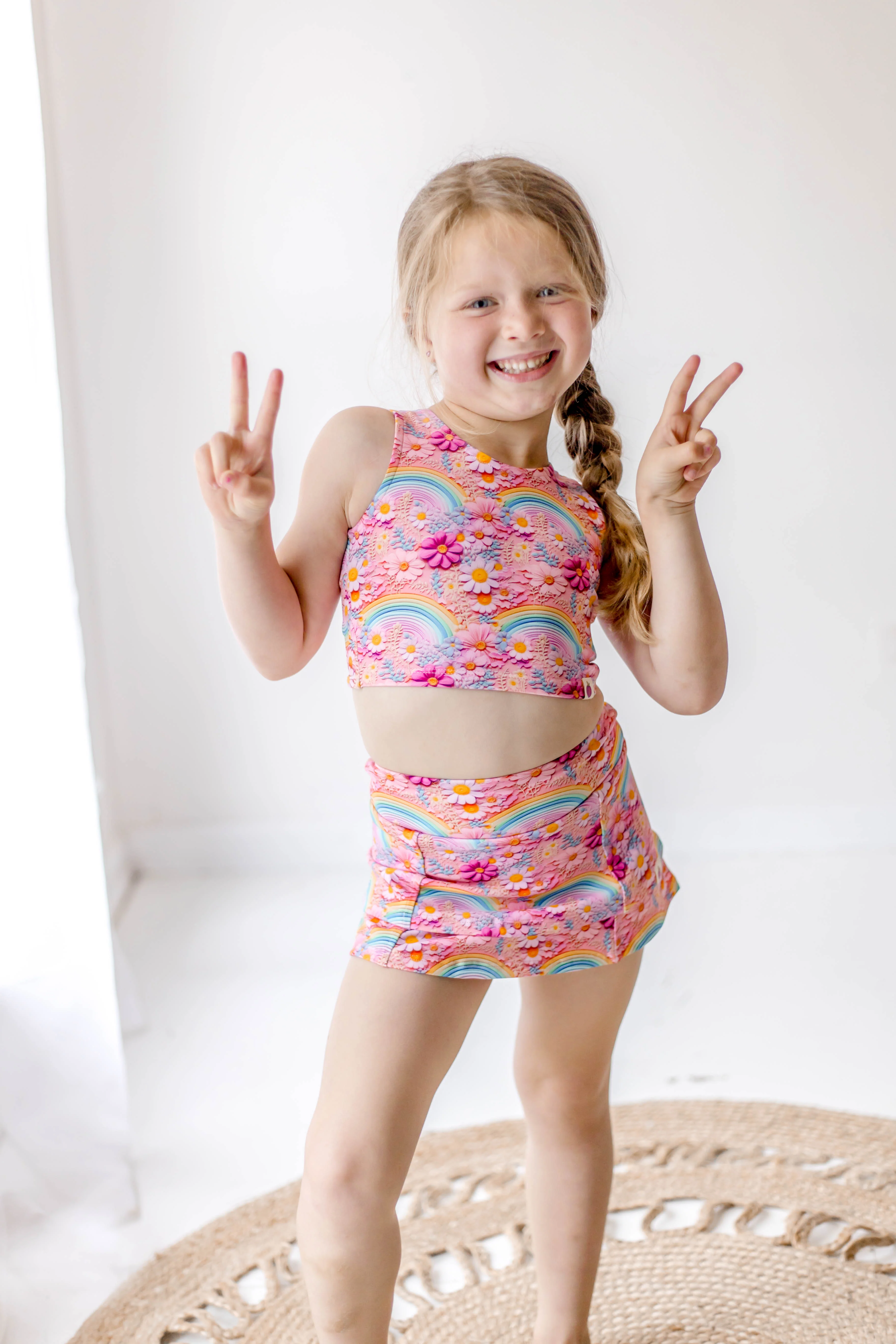Add a touch of whimsy to your workout with our Active Skirt - Chasing Rainbows! The attached shorts provide coverage while the skirt gives you freedom to move.