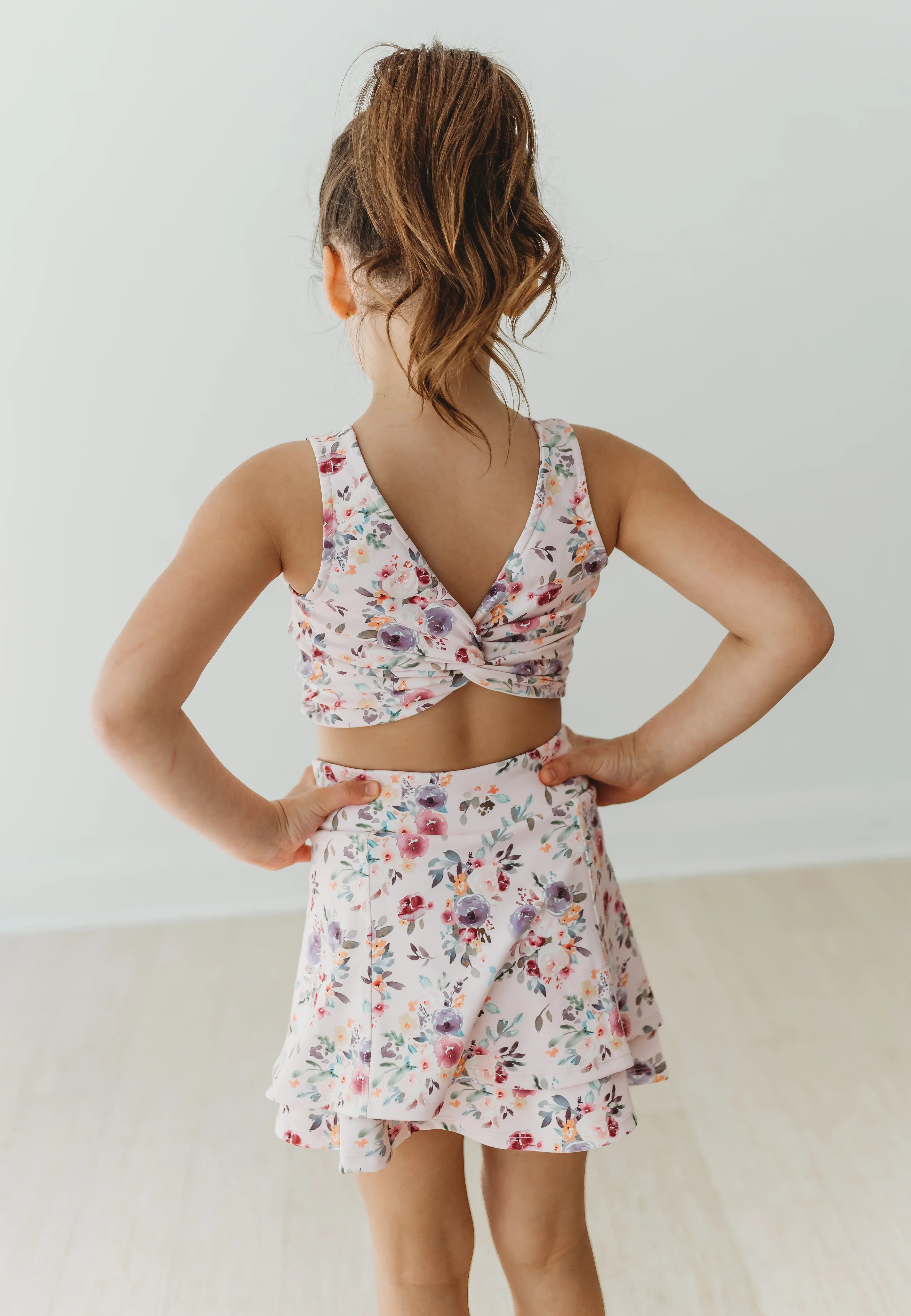 Get ready to move and groove in our Active Skirt - Violet Breeze. This skirt features attached shorts for added coverage. Flip, tumble, and show off your moves in this cute, tiered skirt in a fun floral print. Don't let anything hold you back!