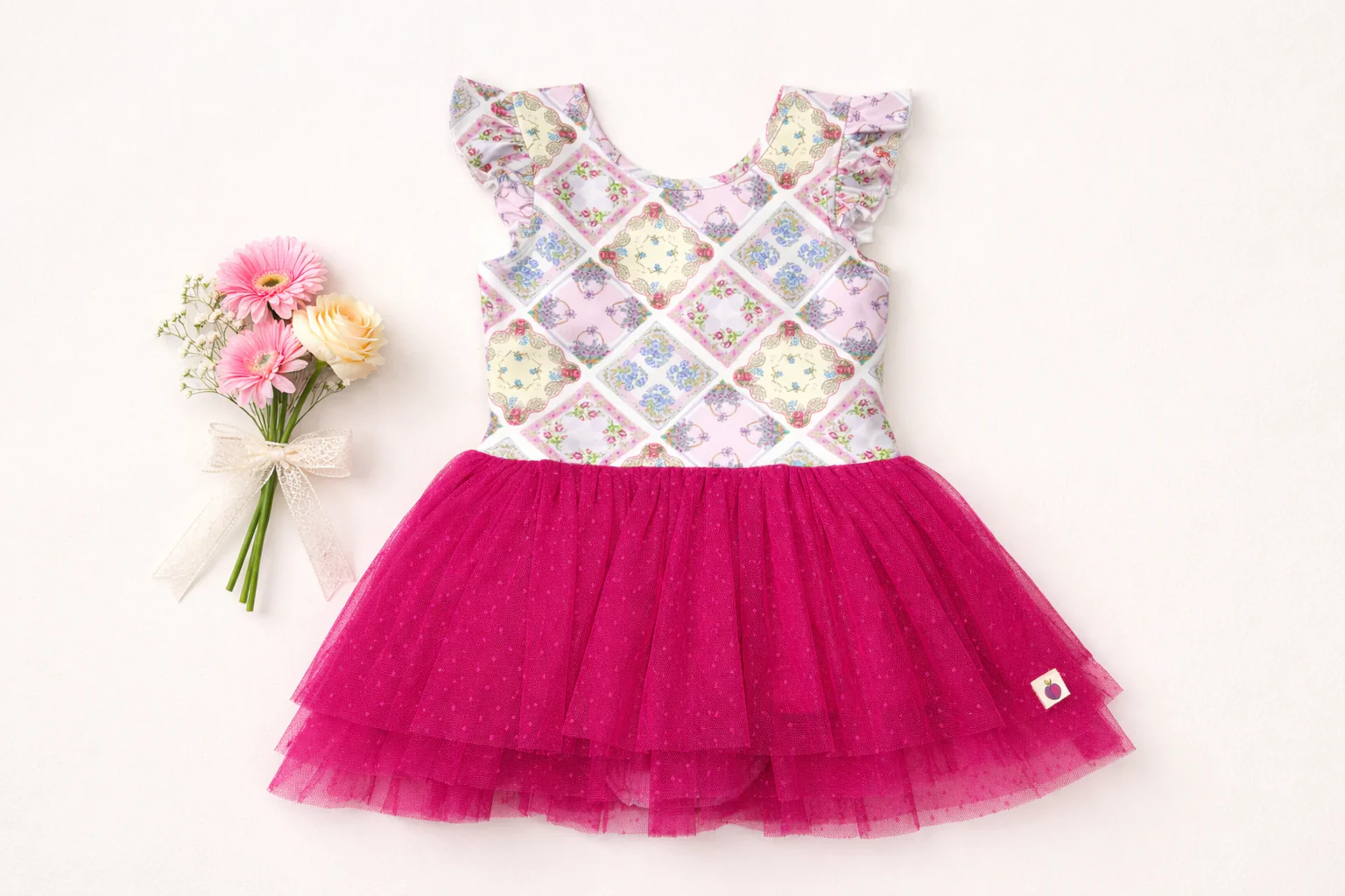 Twirl through spring in this charming leotard, adorned with delicate heirloom blooms that celebrate the season's fresh awakening. Crafted for young dancers and active kids, the Farrah features a comfortable, stretchy fit that moves with every leap and pirouette. The soft botanical print brings a whimsical touch to dance class, playtime, or performance. Perfect for building confidence and celebrating childhood joy through movement.