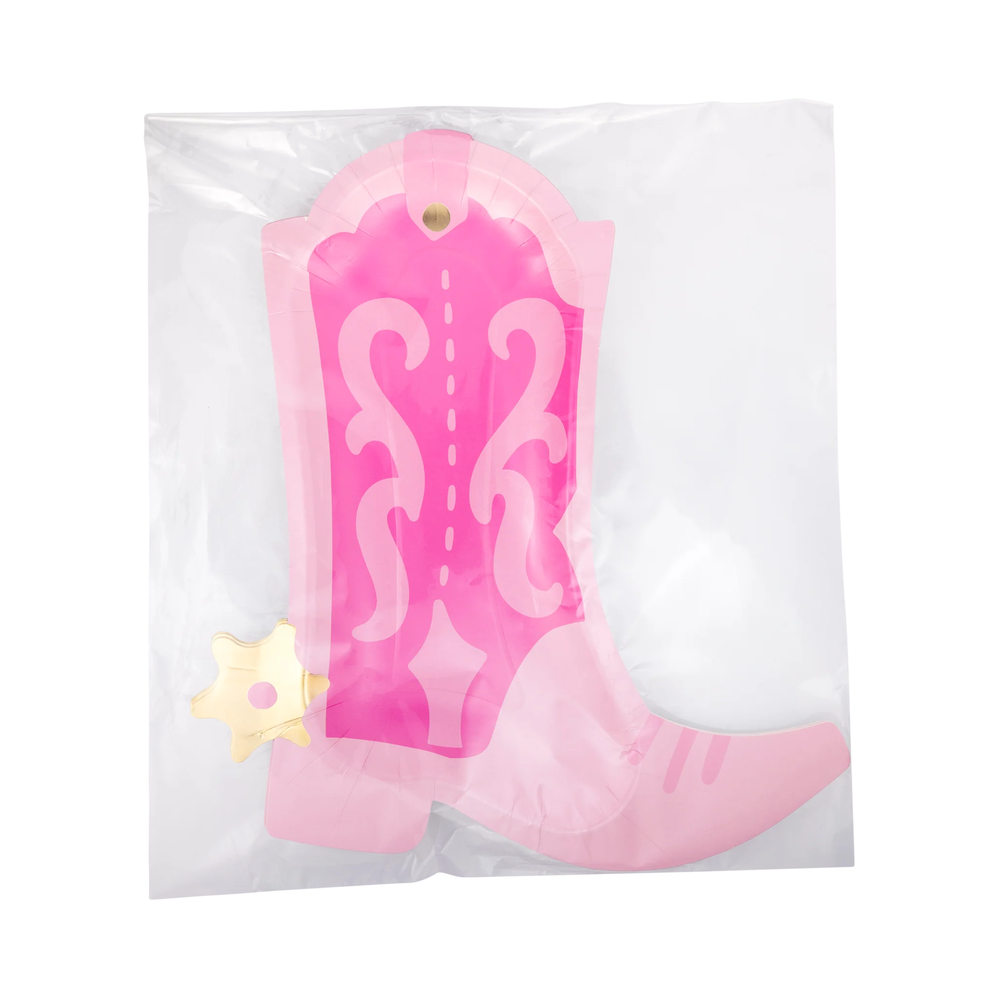 Cowgirl Pink Boot Shaped Plate - 8PK