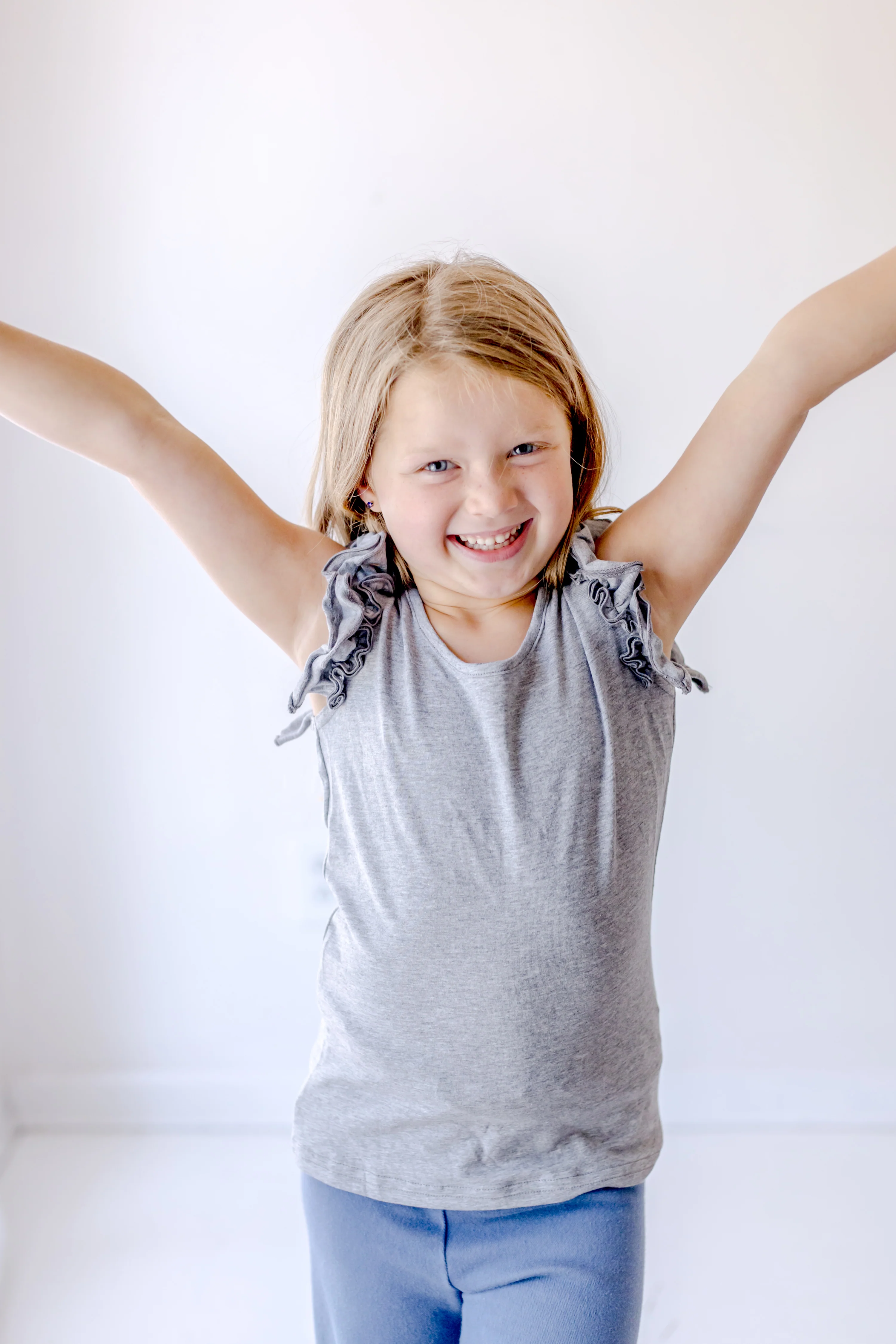 This Stardust Ruffle Tee adds a playful touch to any outfit. The soft gray fabric is perfect for a DIY project, allowing you to customize your style with ease.